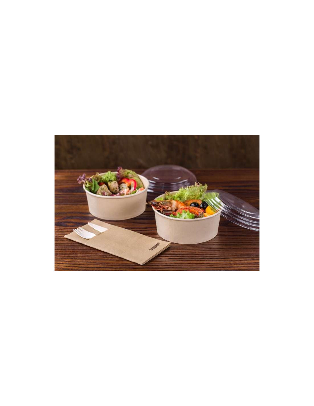 Salatskål er lavet af pap, skålen er lavet kraftig og er PE belagt så de ikke nemt går i stykker. skålen er brun udvendig og hvid indeni så jeres mad altid vil fremstå pænt og lækkert. skålen er pæn og præsentabel og er et godt alternativ til plastik salat skåle.
