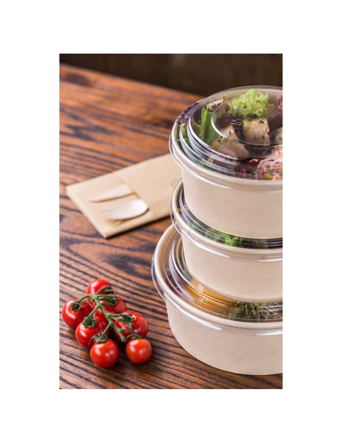 Salatskål er lavet af pap, skålen er lavet kraftig og er PE belagt så de ikke nemt går i stykker. skålen er brun udvendig og hvid indeni så jeres mad altid vil fremstå pænt og lækkert. skålen er pæn og præsentabel og er et godt alternativ til plastik salat skåle.